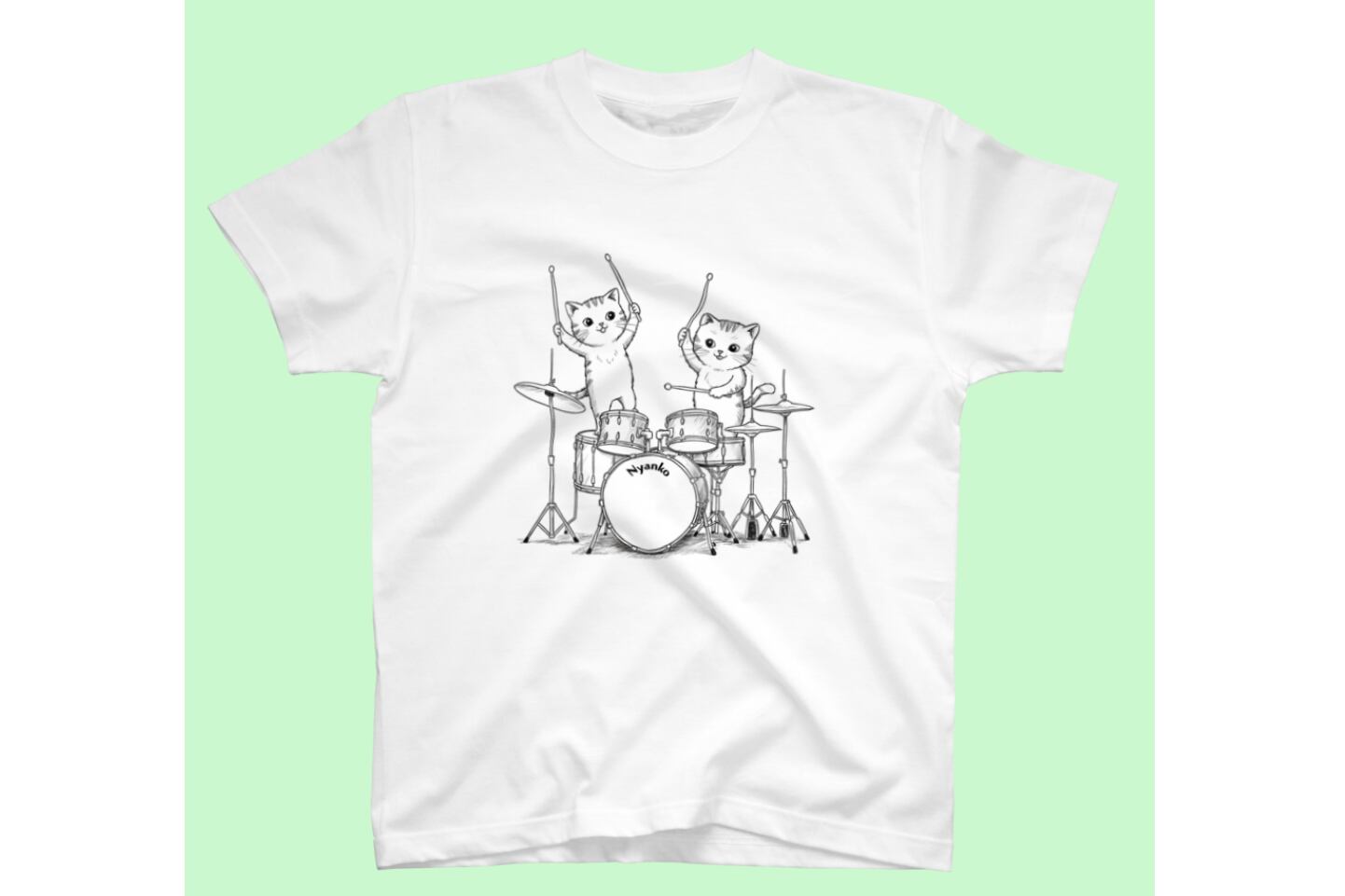 ドラムセットのバスドラムに描かれた「nyanko」のロゴが、