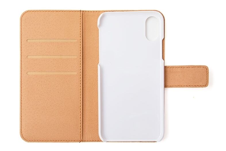 ファゴットの絵柄がプリントされた手帳型のスマホケース。